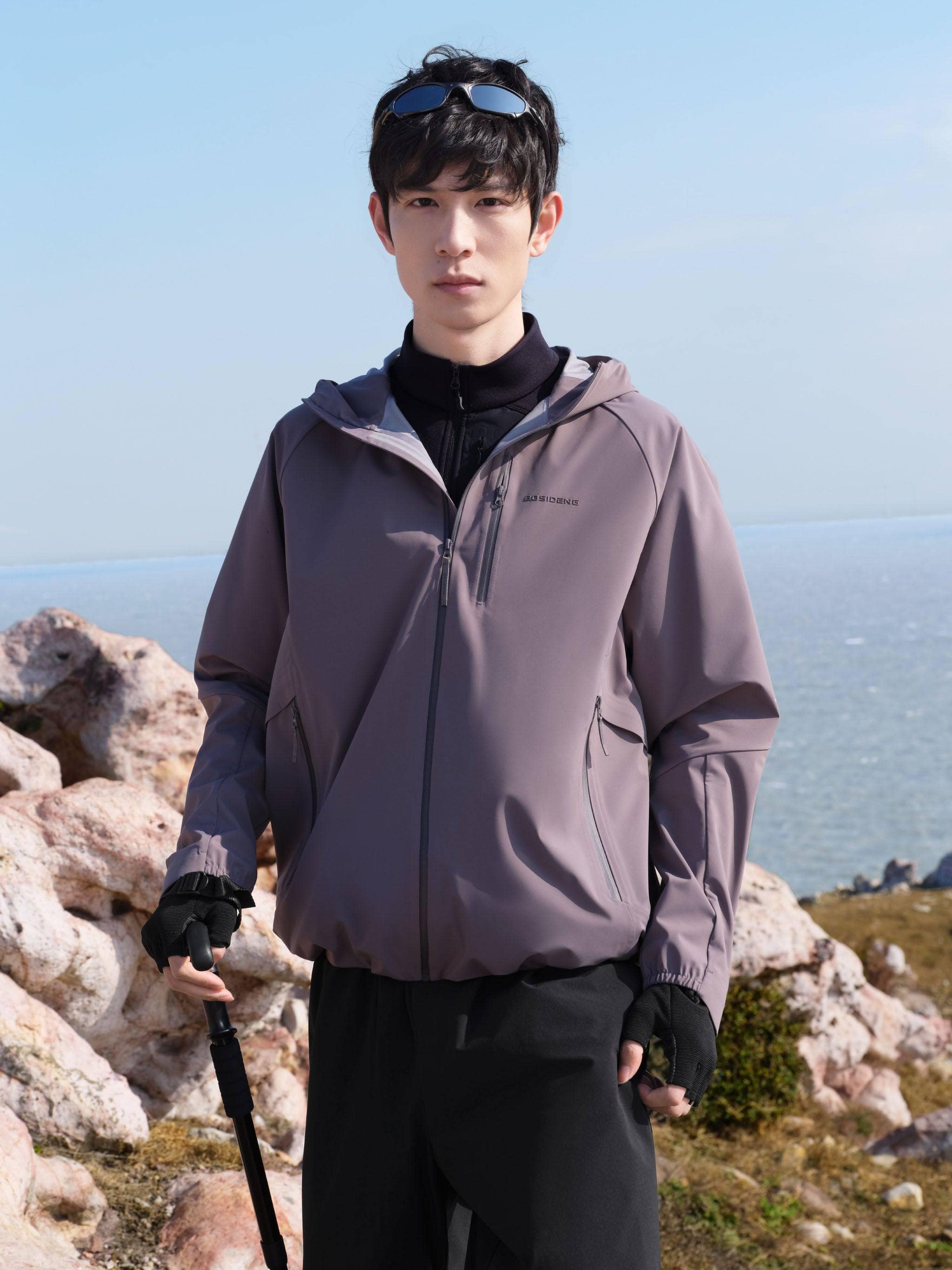 Designed for versatility, this All-Weather Jacket features BOSIDENG-developed lightweight functional fabric, offering water resistance, windproofing and sun protection while staying breathable. Provides a customisable fit for any adventure.