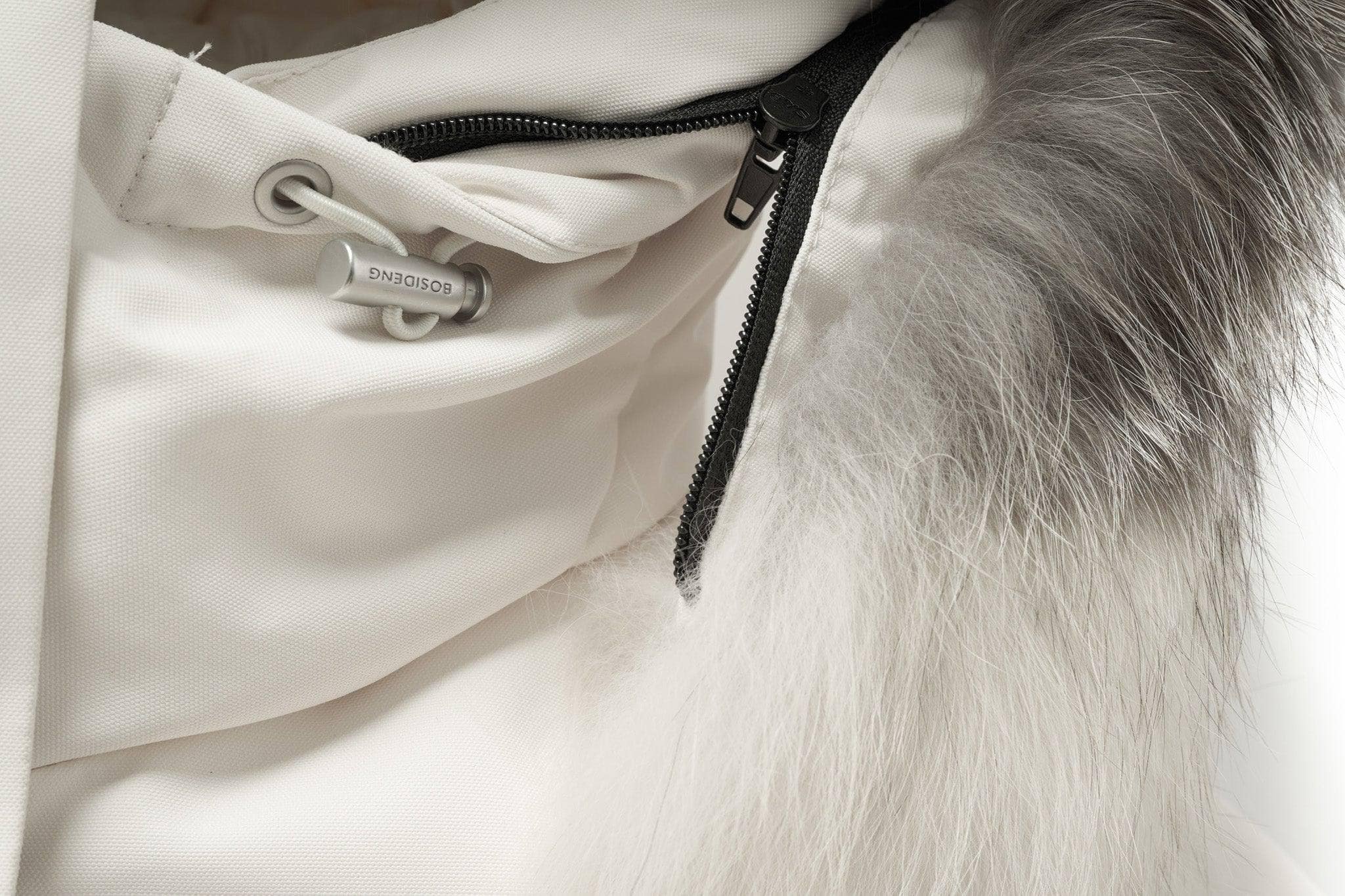 FUR TRIM: In silver fox fur, warm and comfortable with a smooth touch.