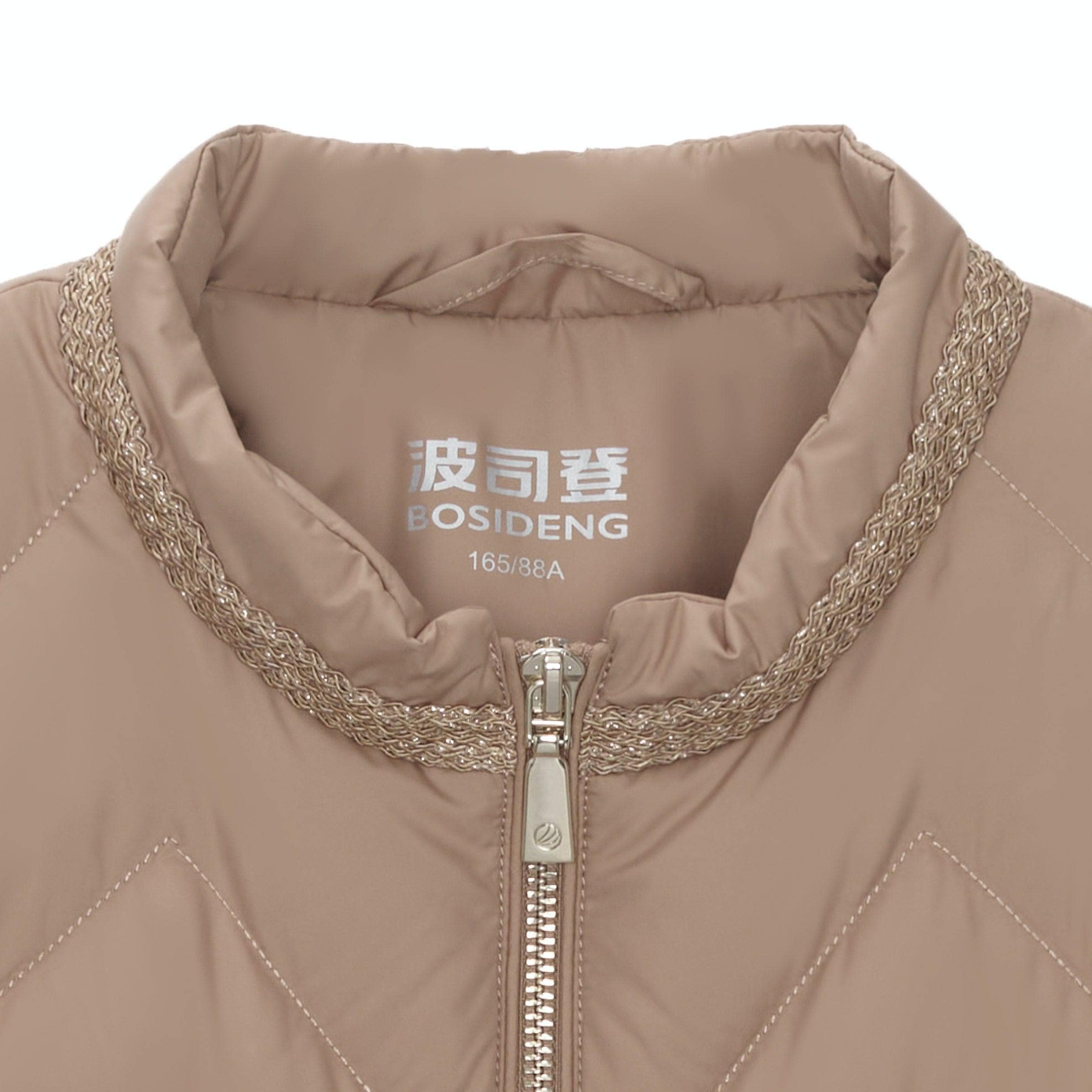 ELEGANT FUSION: A sophisticated blend of tweed and down quilting creates a refined look, ideal for business settings and versatile occasions.