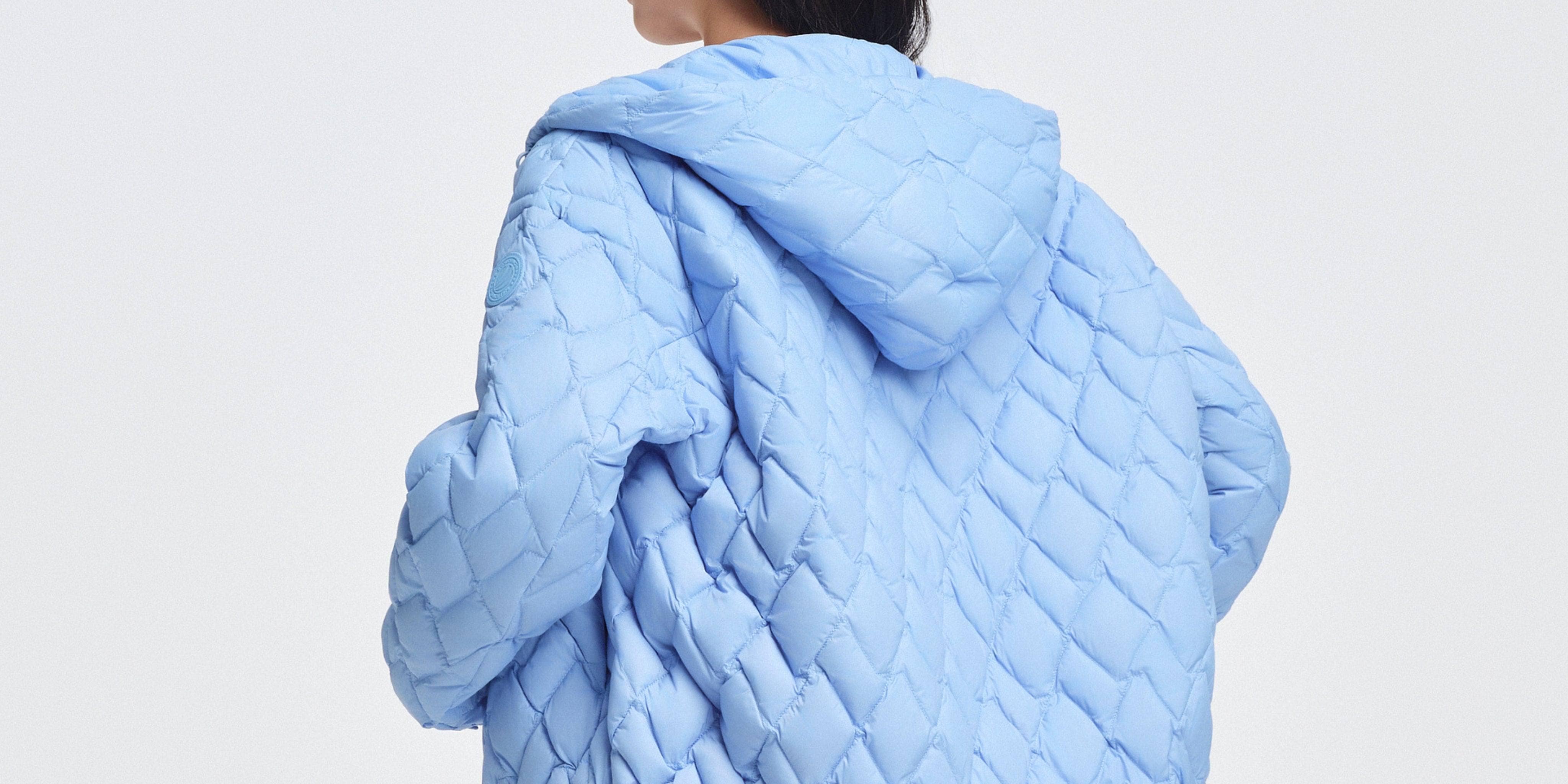 Blending everyday ease with creative flair, this hooded jacket features houndstooth-inspired quilting, a relaxed silhouette and lightweight soft-touch warmth – perfect for brisk morning strolls through the city.