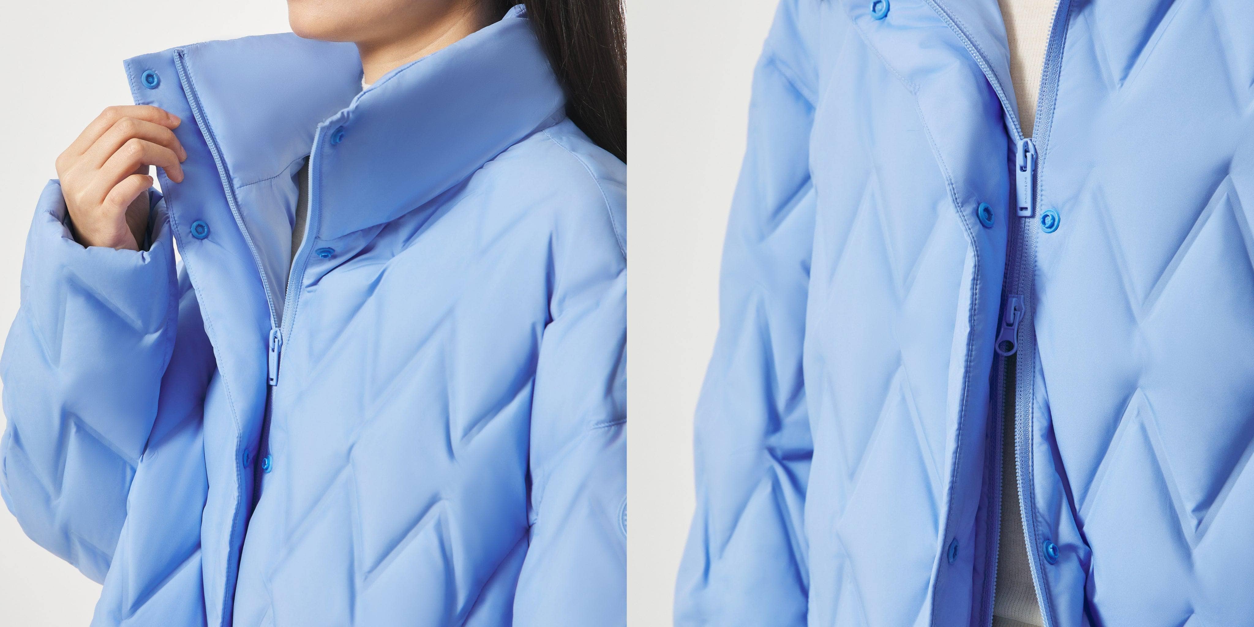 Ideal for light layering, this jacket features a wave-pattern seamless down insulation and a silky soft-touch finish – all in a relaxed silhouette with a sleek stand collar for effortless style.