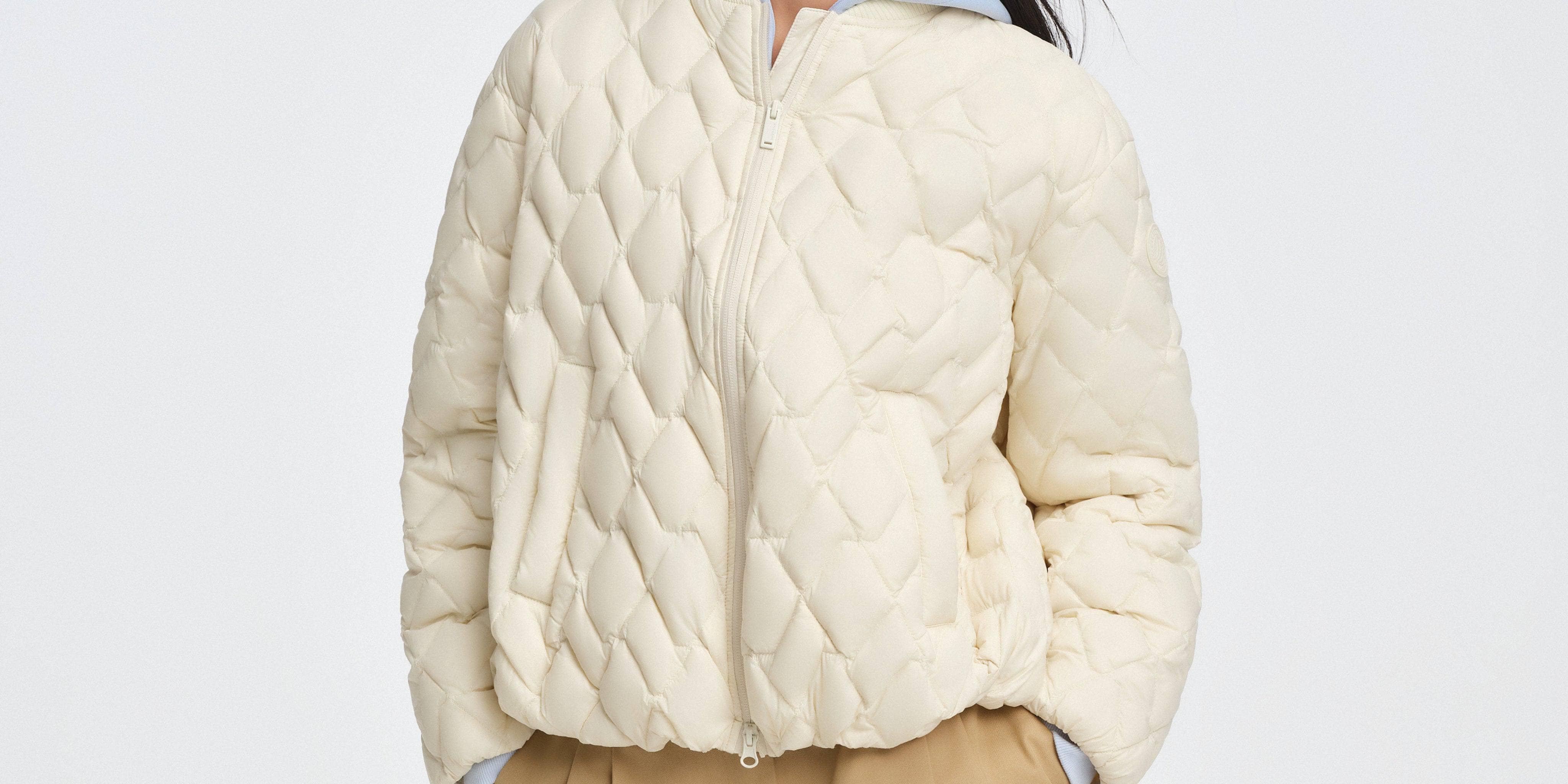 Whether you're heading out for a weekend coffee run or your daily city commute, this jacket blends comfort and creativity with its lightweight fabric, soft tones, and chic houndstooth quilting. The bomber collar and relaxed fit add a stylish finish to this effortlessly wearable piece.