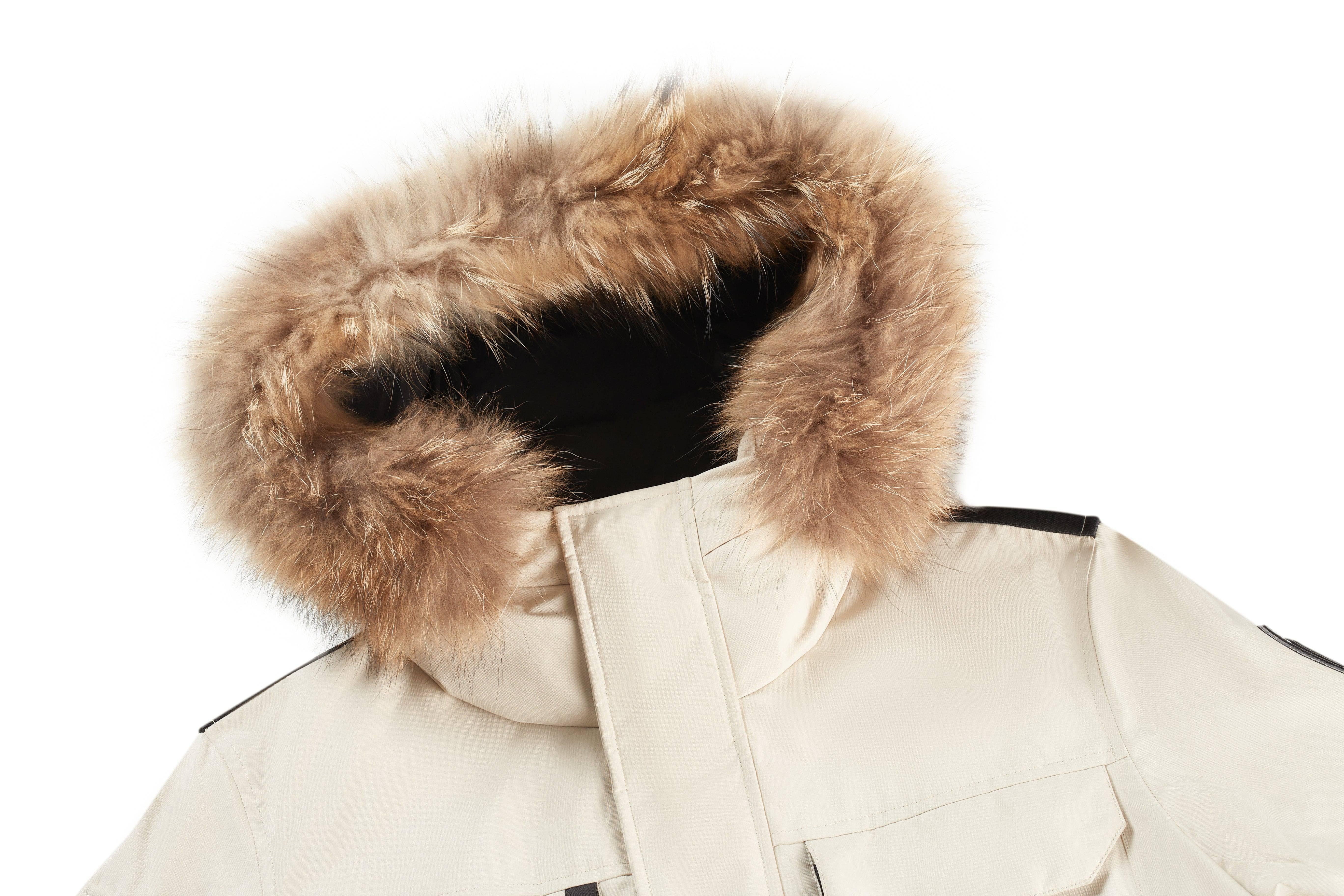 毛领设计:高品质浣熊毛,温暖又时尚。
