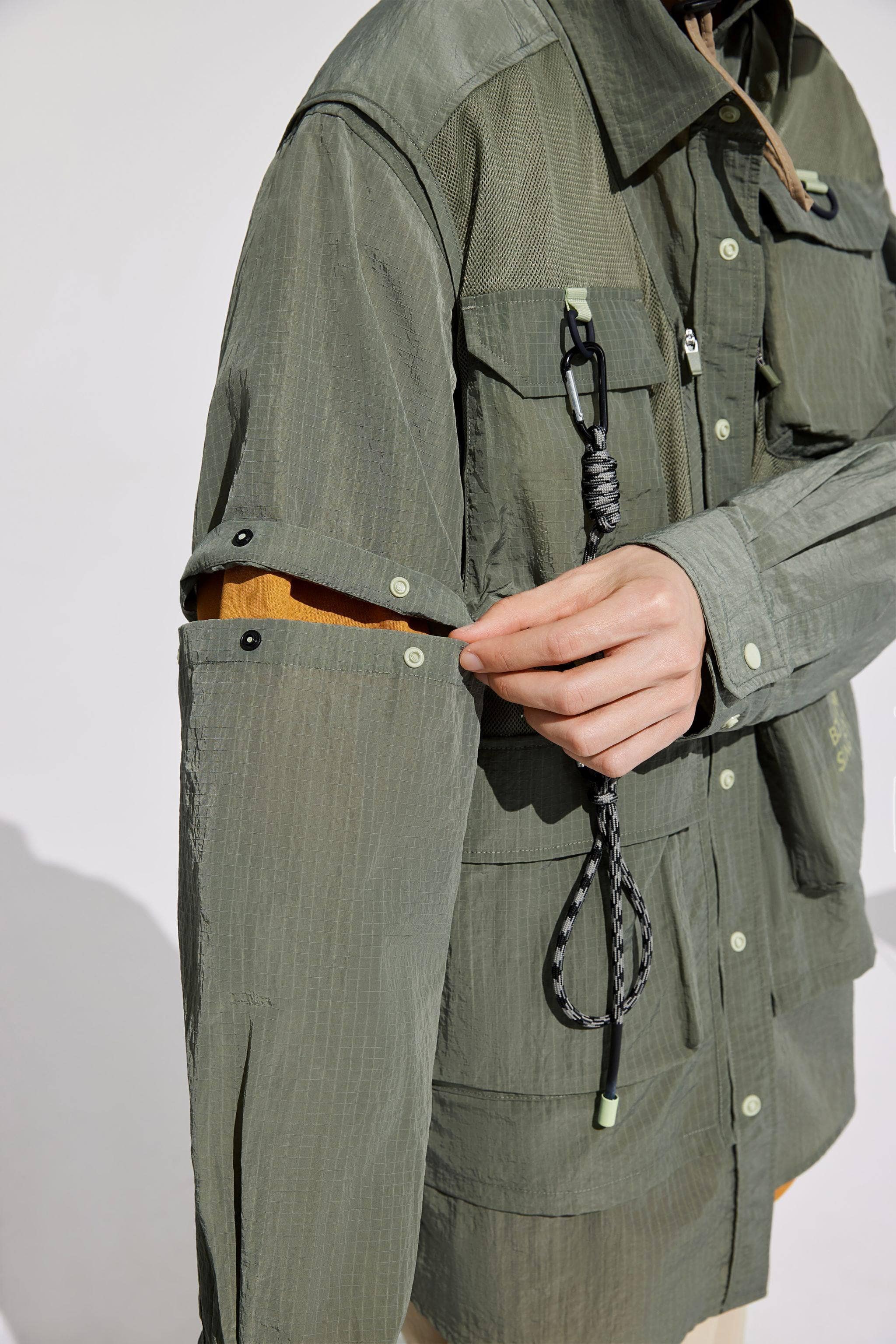 这款夹克可作为衬衫或背心穿着,袖子可调节,方便长短穿着。它拥有多个实用口袋,方便外出携带,并采用防水透气的纤维面料,确保您在各种户外活动中都能舒适地穿着。准备好迎接任何冒险吧!