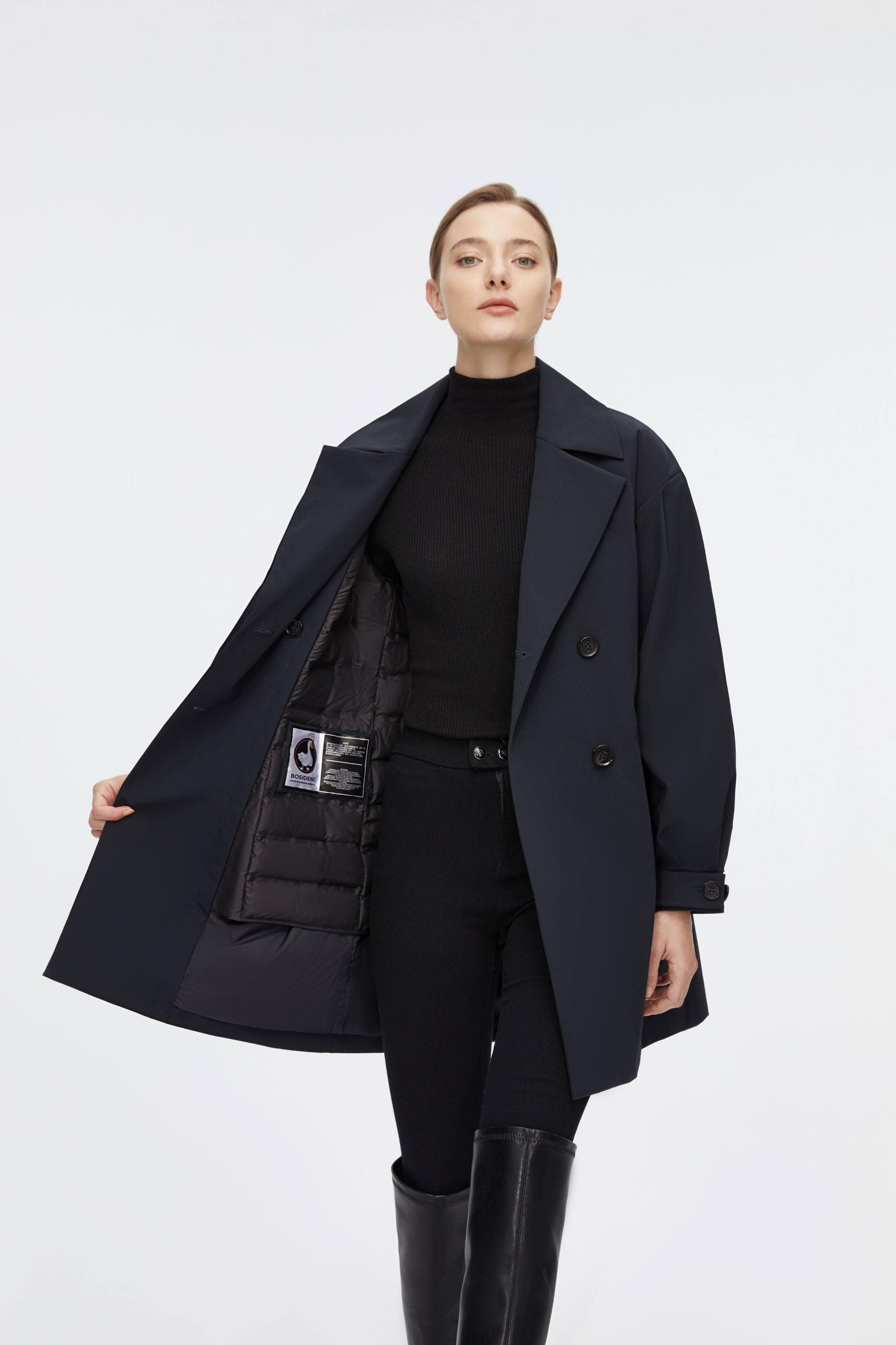 豪华 800+ 填充鹅绒:超轻保暖材料,品质卓越,完美融合风衣设计特色和最佳保暖效果。