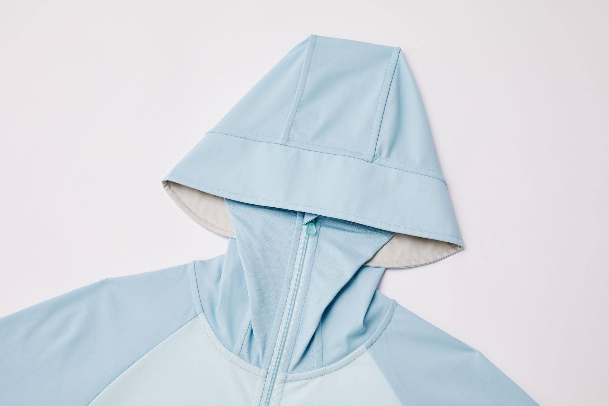 防晒面料:采用预处理的纱线,具有UPF 100+超强防晒因子,有效防止阳光暴晒对皮肤的伤害和衰老。