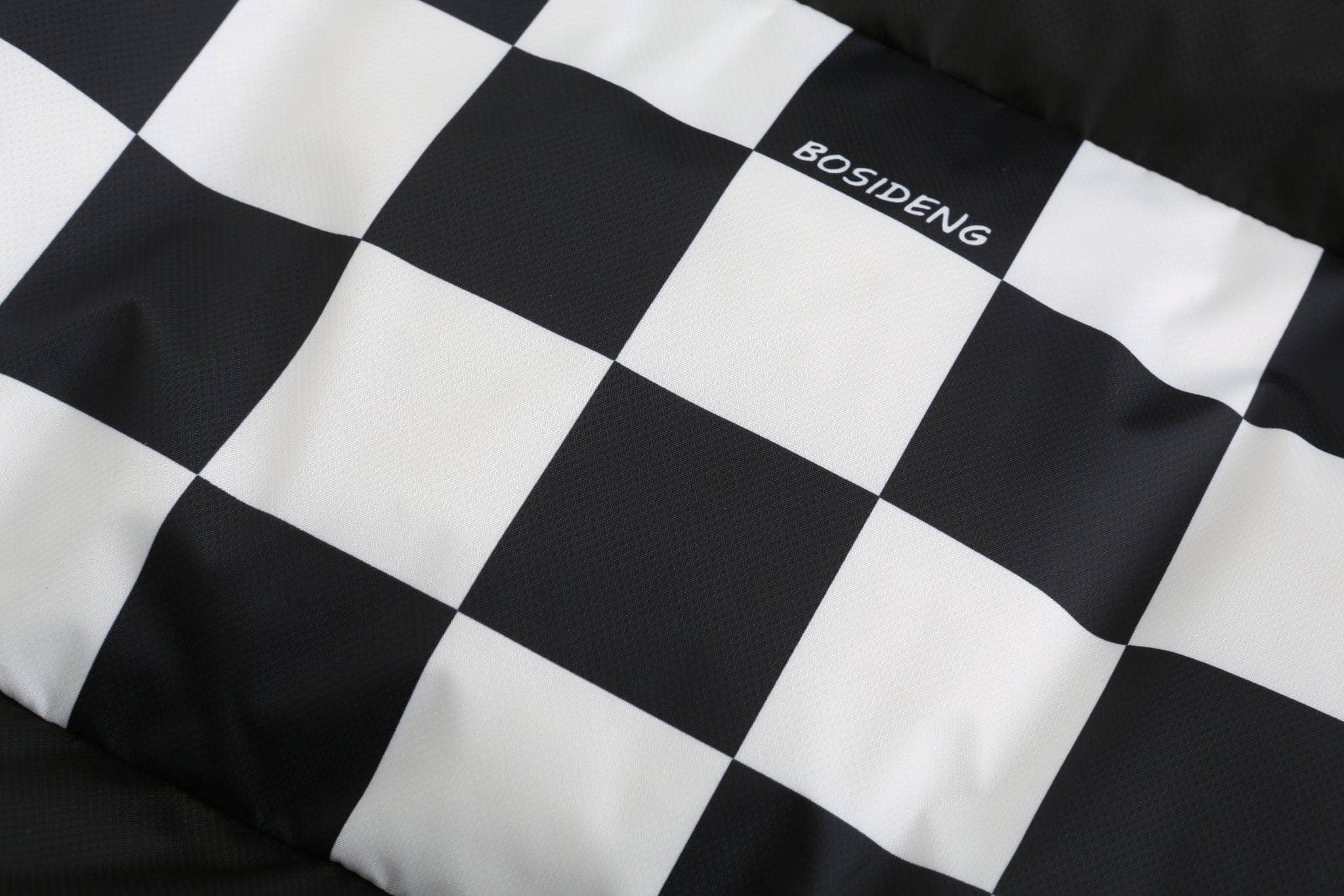 这款时尚短款设计时尚,洋溢着酷炫的年轻气息。配有专属棋盘橡胶标签,增添了独特、俏皮的感觉。