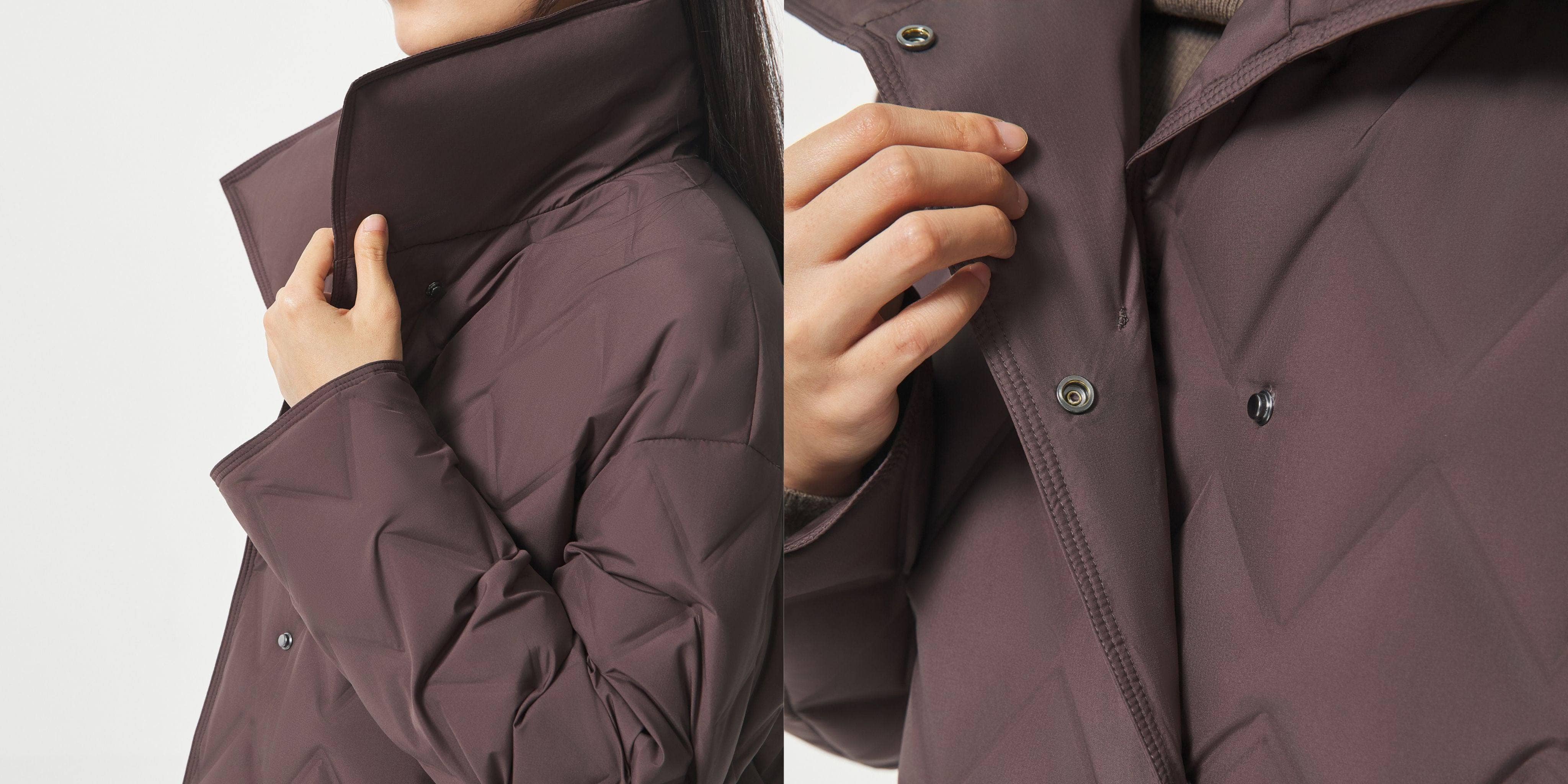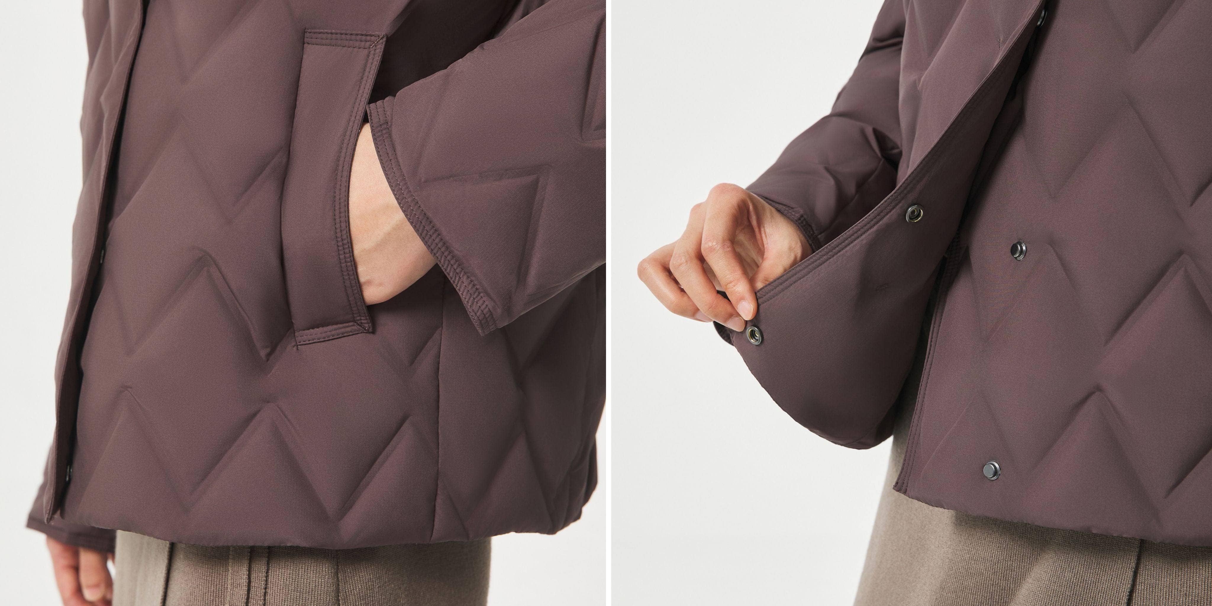 匆匆忙忙地赶着开会,还是出去喝杯咖啡?这款短款夹克采用优雅的翻领设计,搭配奢华的鹅绒保暖面料和无缝保暖面料,轻盈柔软,尽显时尚。